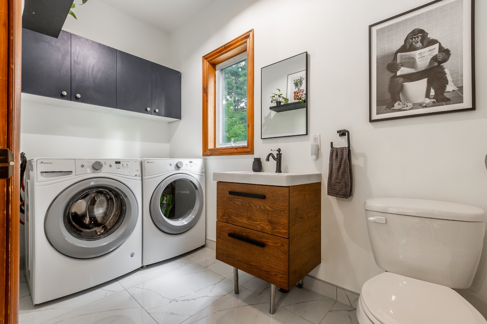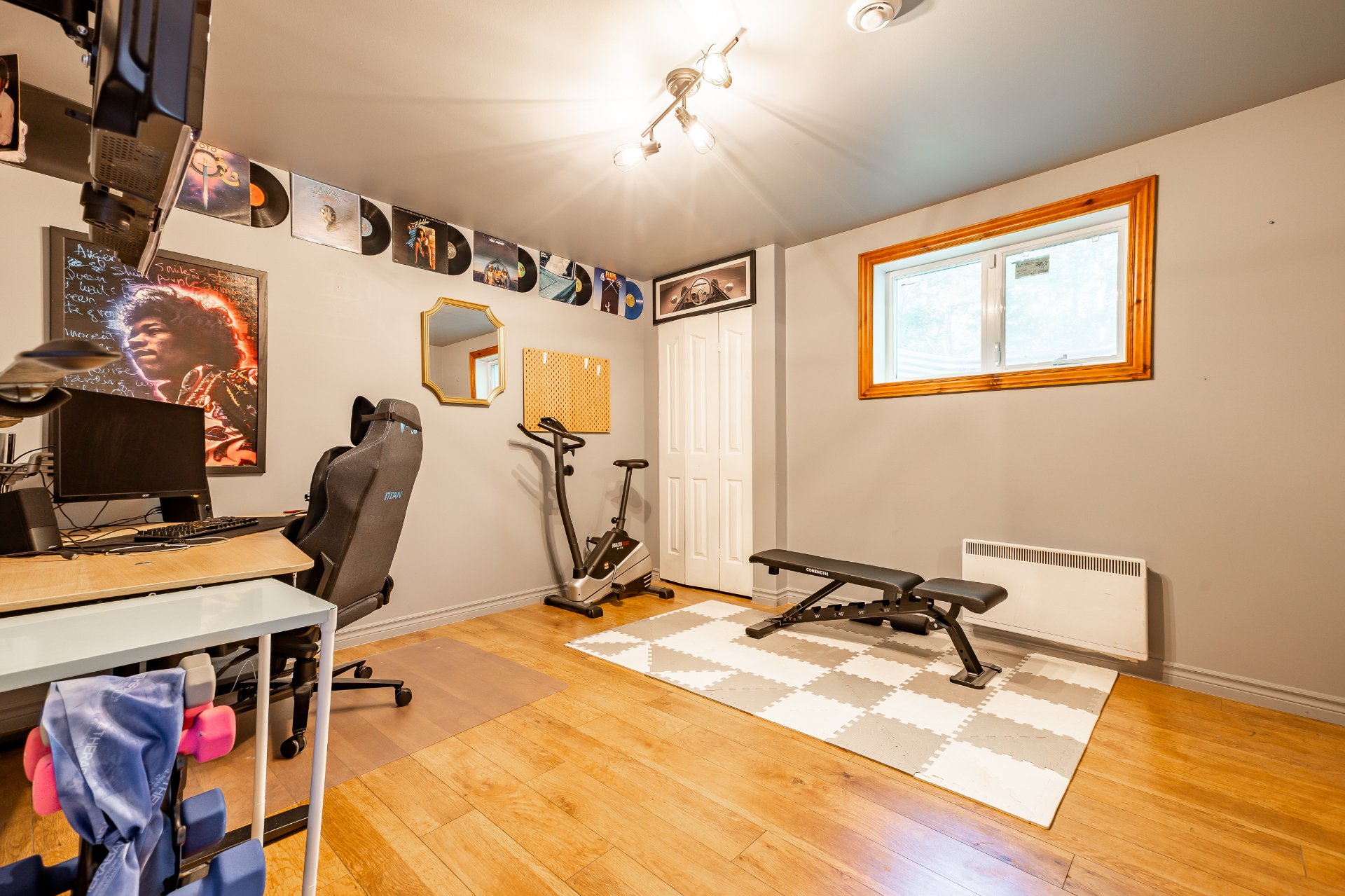 Stores, cabanon, lave-vaisselle, meuble de garde robe dans l'une des chambres au sous-sol, luminaires,installation et borne électrique