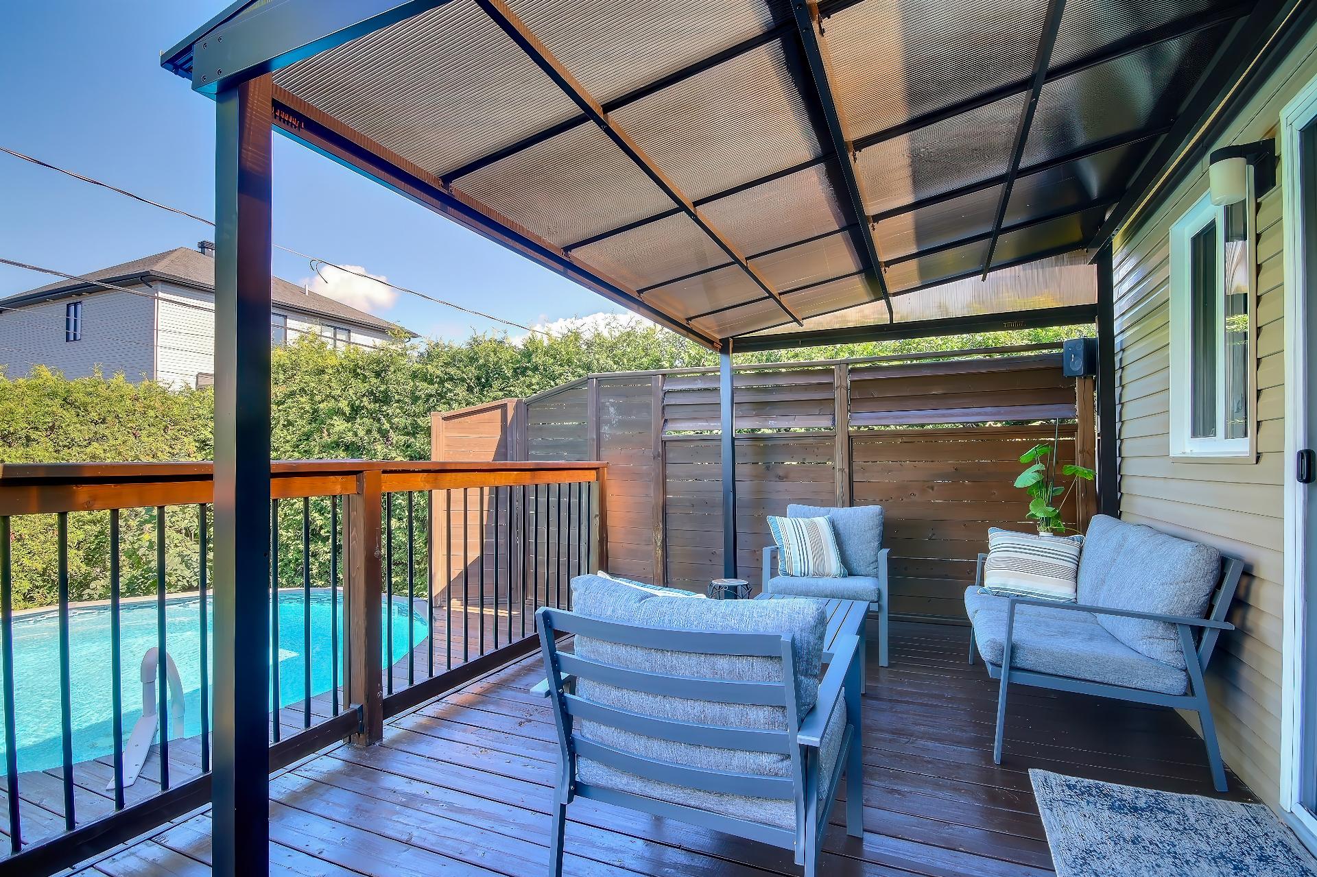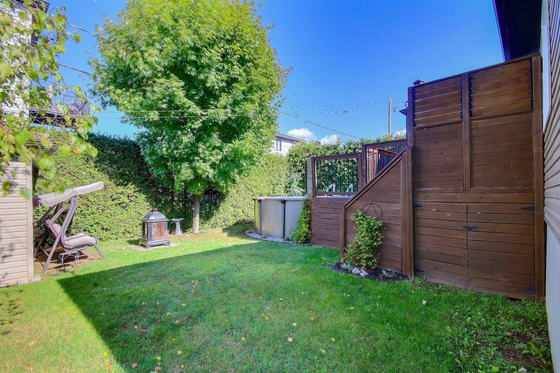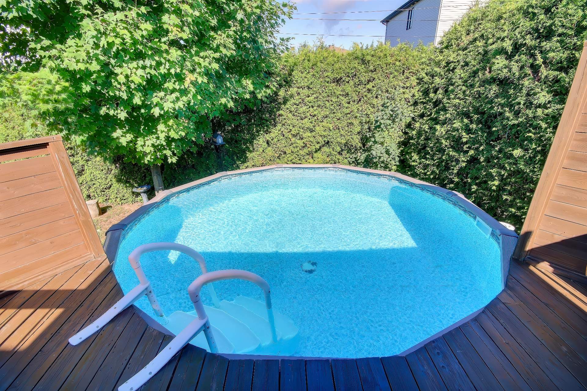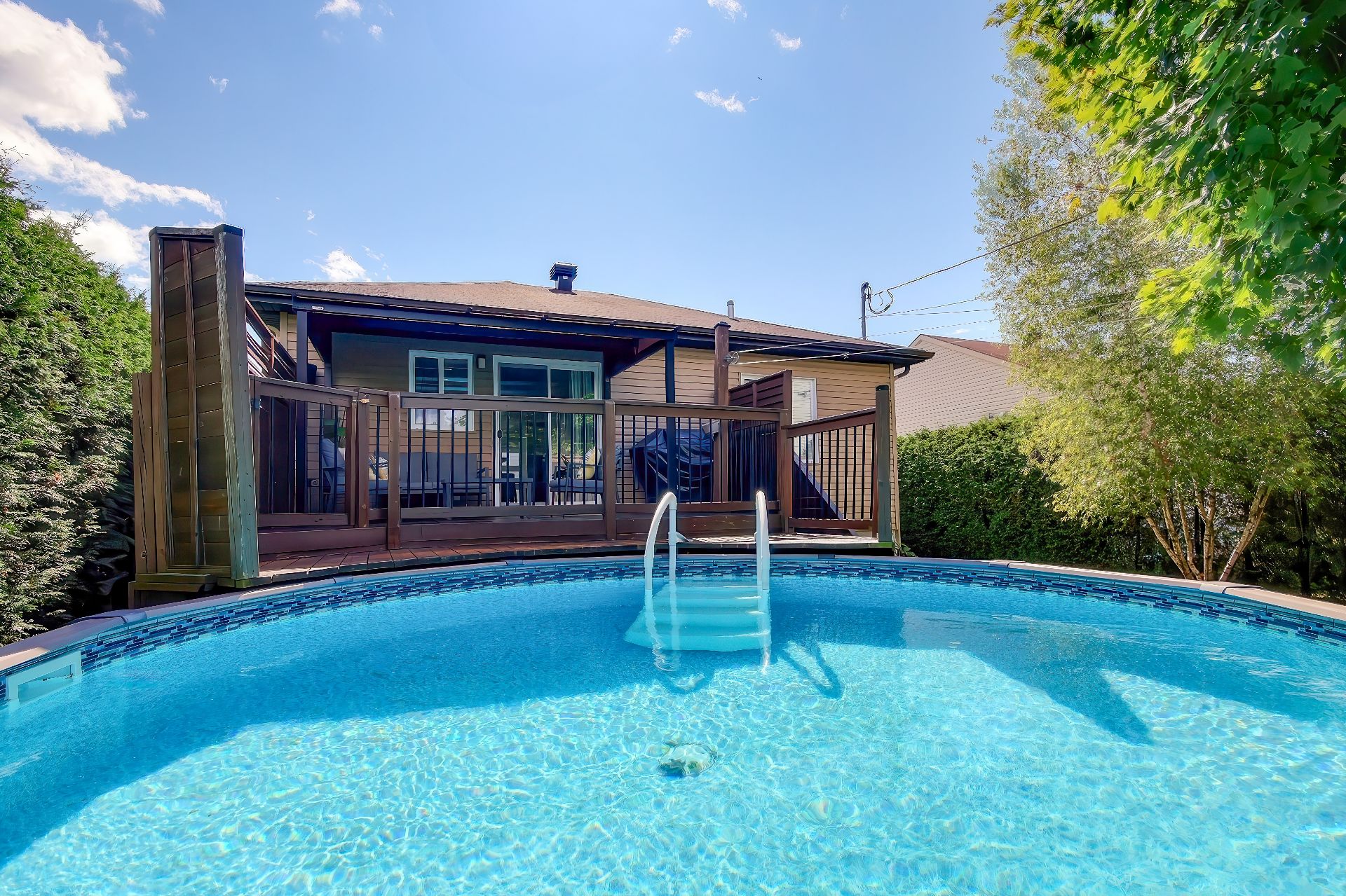 de cèdres, avec piscine hors terre, grande terrasse, gazebo